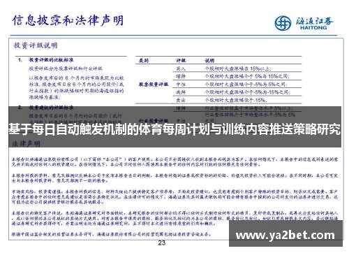 本文将围绕基于每日自动触发机制的体育每周计划与训练内容推送策略展开研究。随着数字化技术的不断进步,尤其是智能手机和可穿戴设备的普及,体育训练也逐渐进入了个性化、精准化的新时代。在这种背景下,如何通过智...